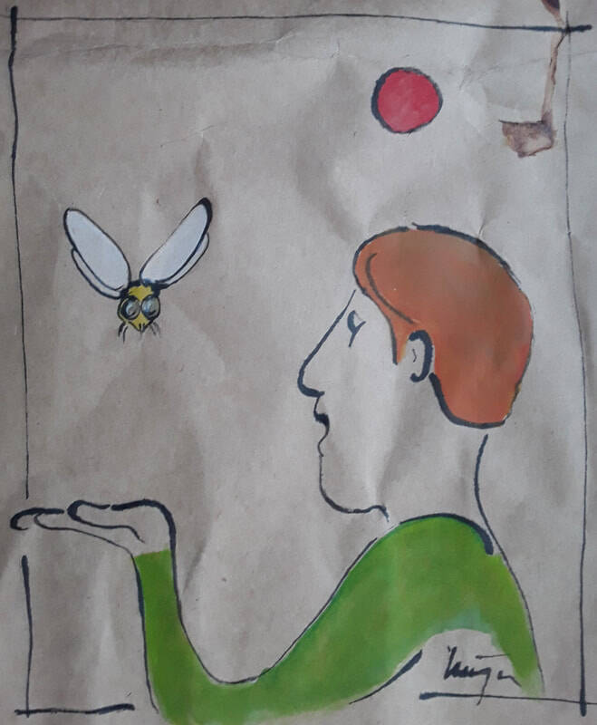 Evenals voorgaande jaren zijn een aantal tekeningen op gekreukeld papier te zien. Gestuurd door vlekken en kreukels in het bruine papier ontstaan allerlei figuren. Deze worden uitgewerkt met inkt en acrylverf.